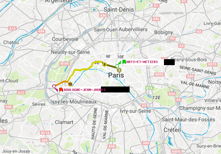 Feuille de route en métro (Arts-et-Métiers -> Boulogne-Jean-Jaurès)