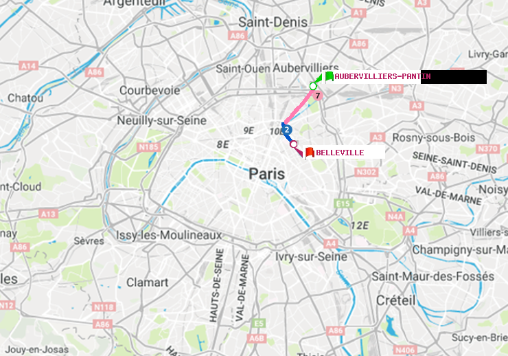 A : Aubervilliers Pantin (4 Chemins) | B : Belleville