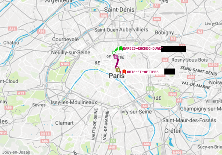 A : Barbès-Rochechouart | B : Arts-et-Métiers