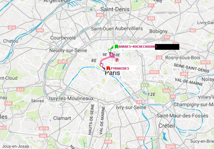 Feuille de route en métro (Barbès-Rochechouart -> Pyramides)