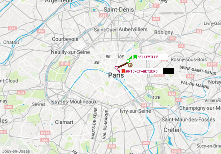 A : Belleville | B : Arts-et-Métiers