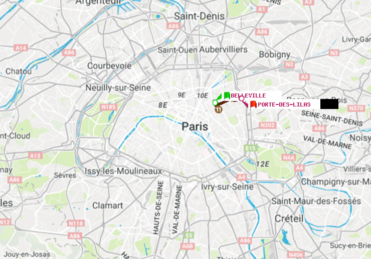 Itinéraire en métro parisien de Belleville vers Porte des Lilas