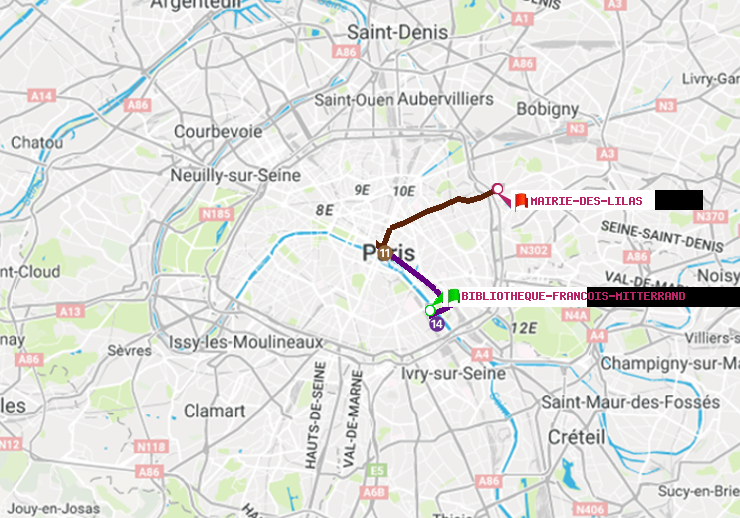 Feuille de route en métro (Bibliotheque-Francois Mitterrand -> Mairie des Lilas)