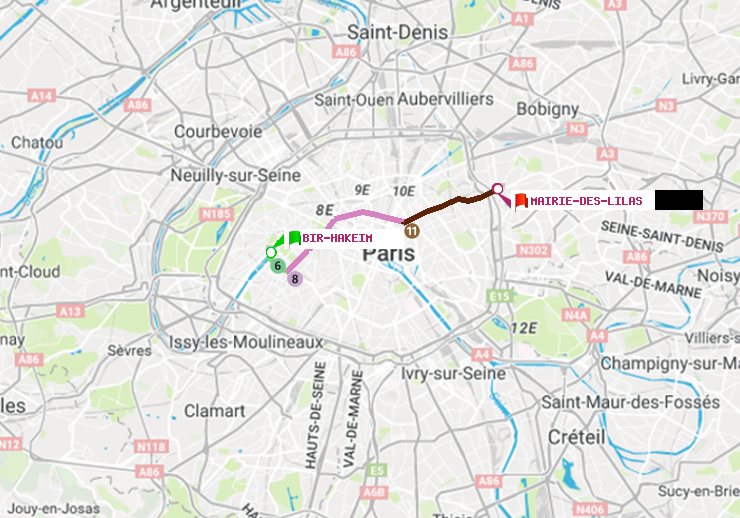 A : Bir-Hakeim (Grenelle) | B : Mairie des Lilas