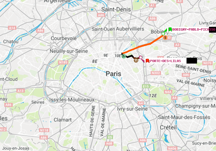 A : Bobigny-Pablo-Picasso | B : Porte des Lilas