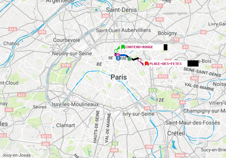 Feuille de route en métro (Château Rouge -> Place des Fêtes)