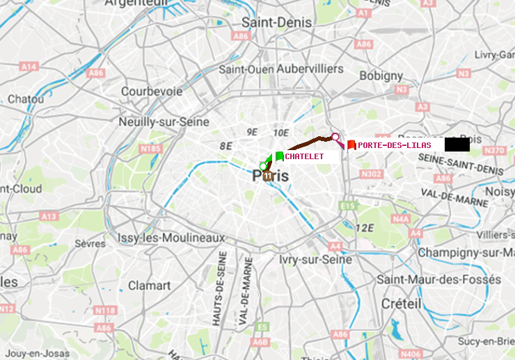 A : Châtelet | B : Porte des Lilas