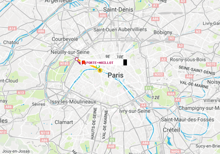 . Quant à l'arrêt Porte Maillot, il est situé à l'adresse : 16 place de Verdun 75117 Paris 16ème
