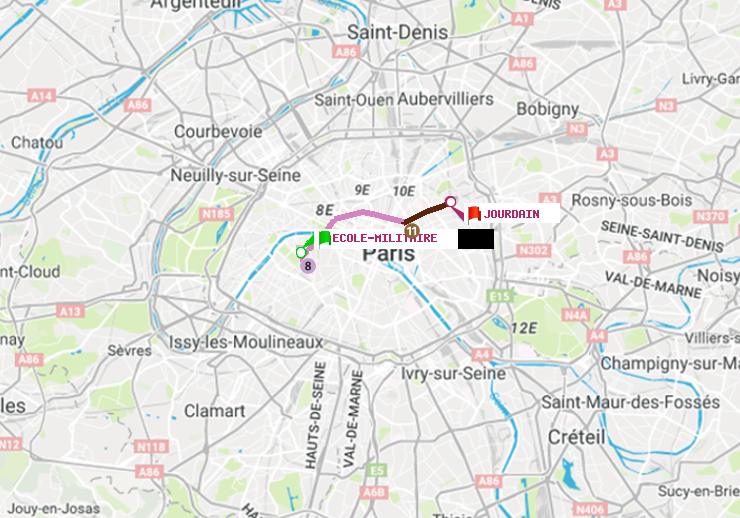 Feuille de route en métro (Ecole Militaire -> Jourdain)