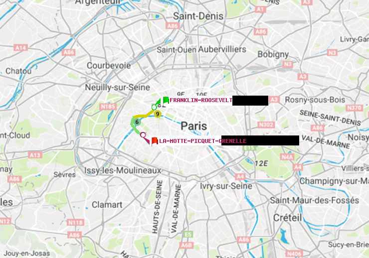 Feuille de route en métro (Franklin-Roosevelt -> La Motte-Picquet-Grenelle)