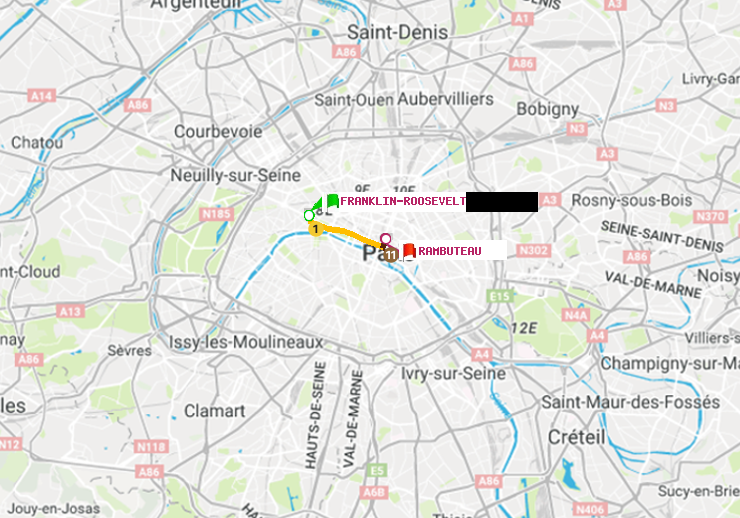 Plan de l'itinéraire métro de Franklin-Roosevelt vers Rambuteau