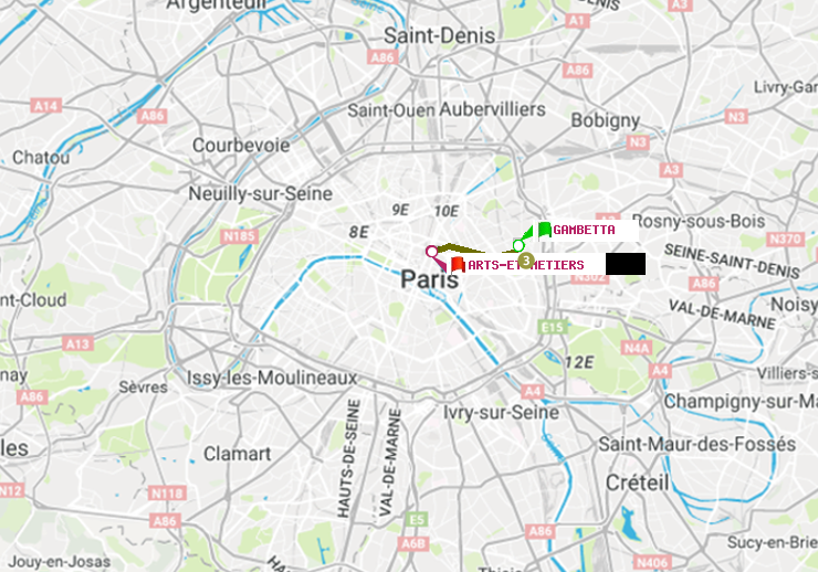 Plan de l'itinéraire métro de Gambetta vers Arts-et-Métiers