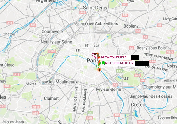 A : Gare d'Austerlitz | B : Arts-et-Métiers