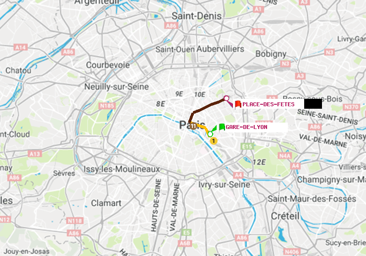 Feuille de route en métro (Gare de Lyon -> Place des Fêtes)