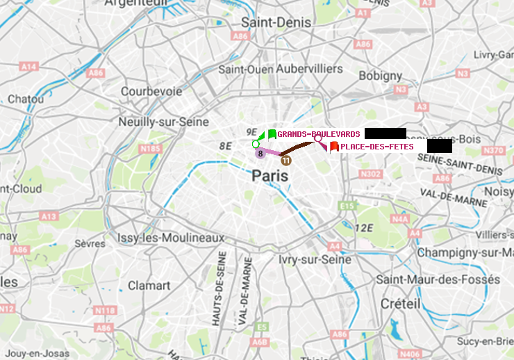 Feuille de route en métro (Grands Boulevards -> Place des Fêtes)