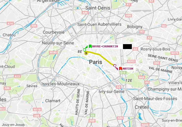 L'itinéraire le plus rapide en métro pour aller de la station Havre-Caumartin située boulevard Haussmann / et vers la rue Caumartin 75109 Paris 9ème vers la station Nation localisée 3 place de la Nation 75112 Paris 12ème , est parcouru en 00 H 24 minutes. Sans compter la durée de l'attente et de la marche à pied pour rejoindre les stations éstimée à 5 minutes.