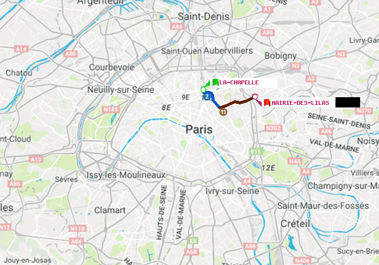 Il n'y a pas de ligne de métro directe entre les stations La Chapelle et Mairie des Lilas. Le trajet est effectué avec une correspondances entre les lignes