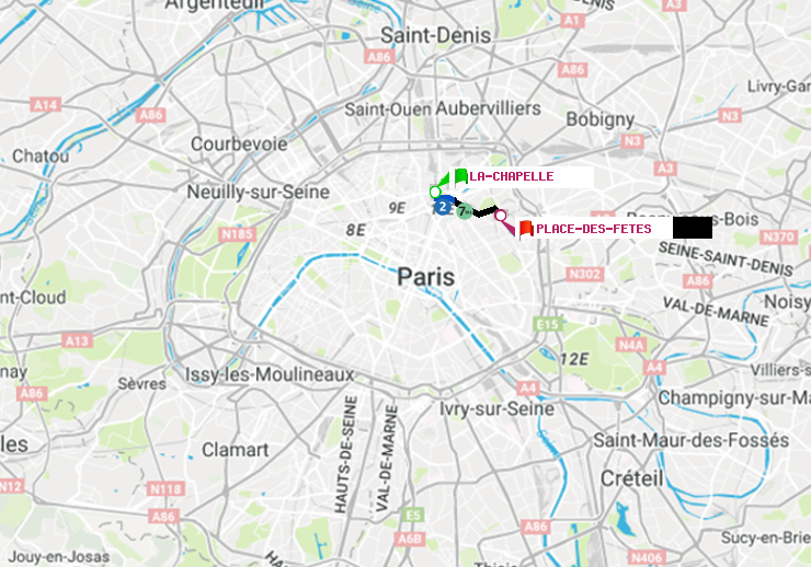 Feuille de route en métro (La Chapelle -> Place des Fêtes)