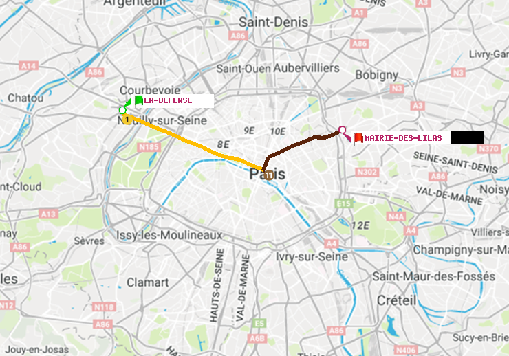 A : La Défense (Grande Arche) | B : Mairie des Lilas