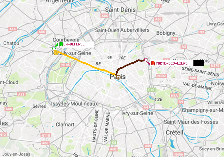 Itinéraire en métro parisien de La Défense (Grande Arche) vers Porte des Lilas