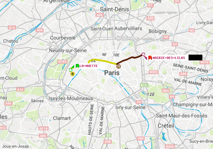 Itinéraire en métro parisien de La Muette vers Mairie des Lilas