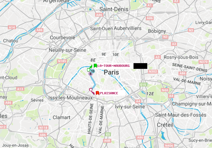 Itinéraire en métro parisien de La Tour-Maubourg vers Plaisance