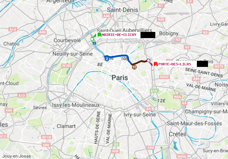 Feuille de route en métro (Mairie de Clichy -> Porte des Lilas)