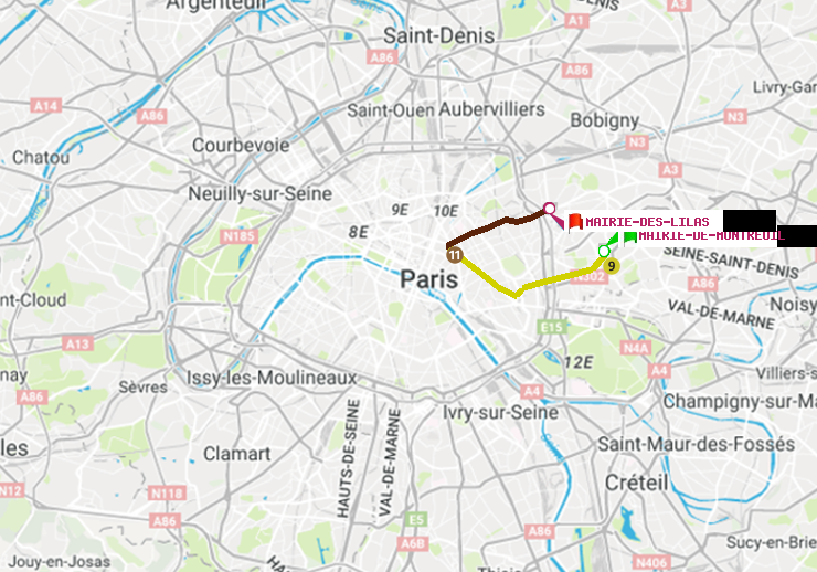 A : Mairie de Montreuil | B : Mairie des Lilas