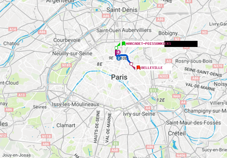 Itinéraire en métro parisien de Marcadet-Poissonniers vers Belleville