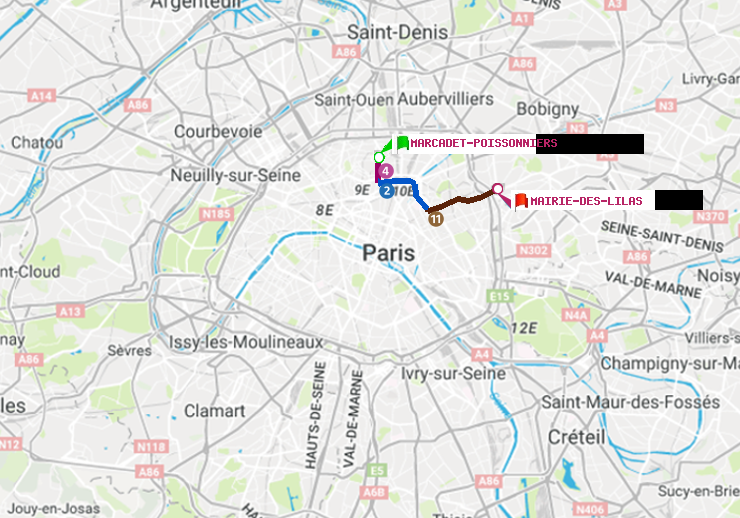 Feuille de route en métro (Marcadet-Poissonniers -> Mairie des Lilas)