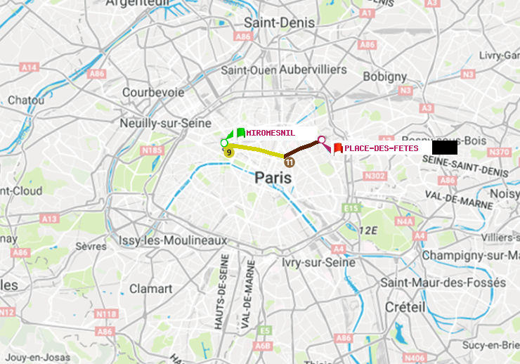 Feuille de route en métro (Miromesnil -> Place des Fêtes)
