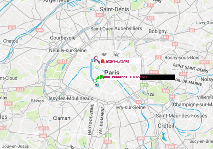 A : Montparnasse-Bienvenue | B : Saint-Lazare