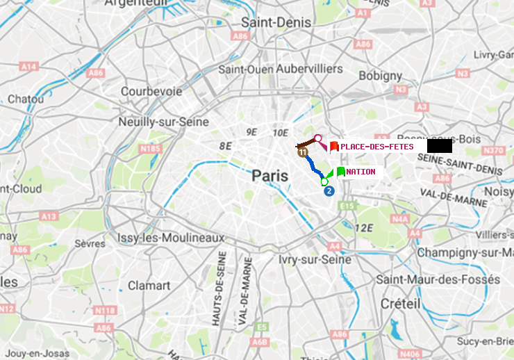 Itinéraire en métro parisien de Nation vers Place des Fêtes