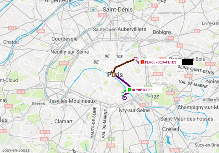 Feuille de route en métro (Olympiades -> Place des Fêtes)