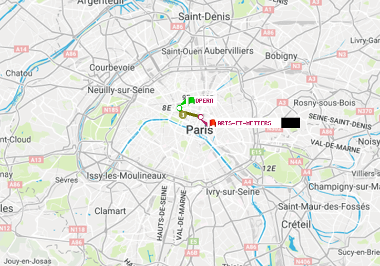 Itinéraire en métro parisien de Opéra vers Arts-et-Métiers