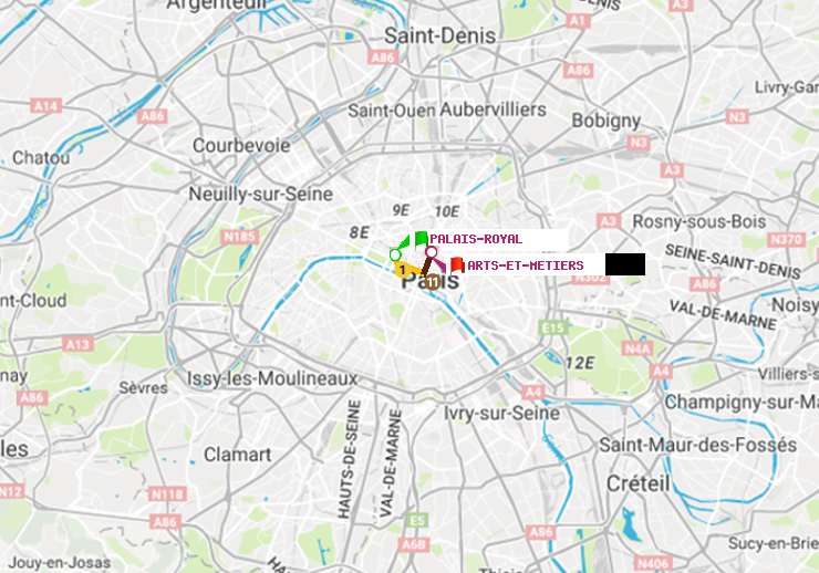 A : Palais-Royal (Musée du Louvre) | B : Arts-et-Métiers