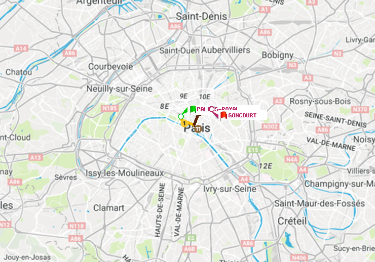 A : Palais-Royal (Musée du Louvre) | B : Goncourt (Hôpital Saint-Louis)