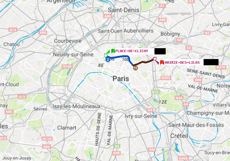 A : Place de Clichy | B : Mairie des Lilas
