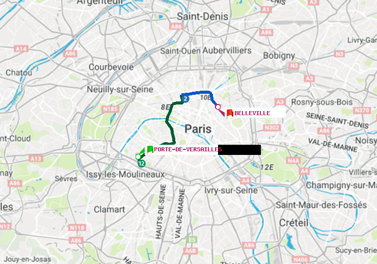 Itinéraire en métro parisien de Porte de Versailles vers Belleville