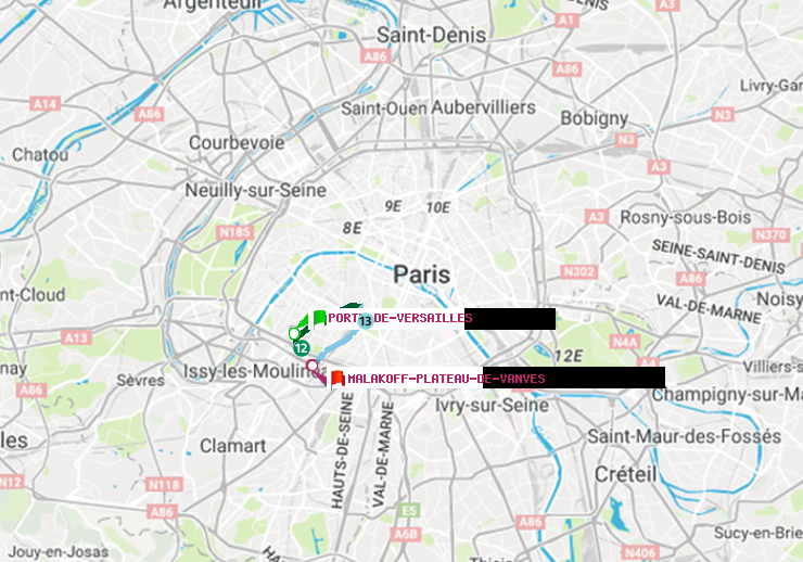 A : Porte de Versailles | B : Malakoff-Plateau de Vanves