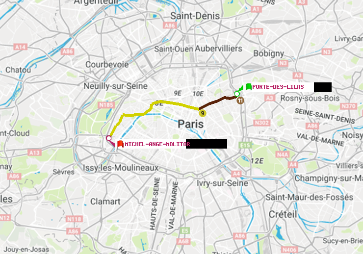 A : Porte des Lilas | B : Michel-Ange-Molitor