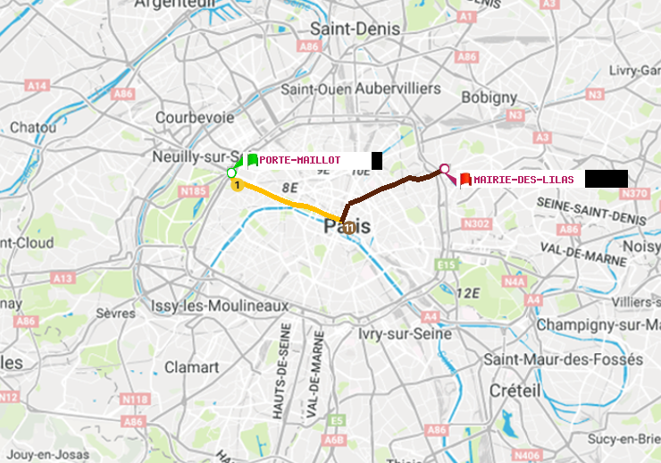 Feuille de route en métro (Porte Maillot -> Mairie des Lilas)
