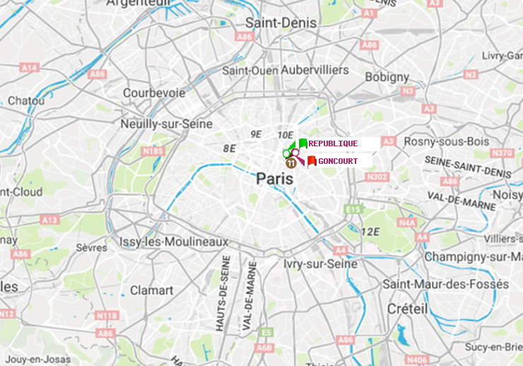 Métro de République à Goncourt (Hôpital Saint-Louis)