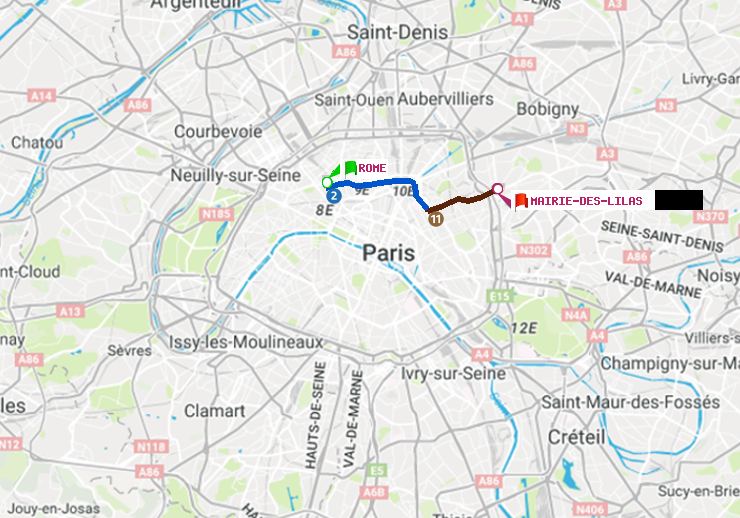 Itinéraire en métro parisien de Rome vers Mairie des Lilas