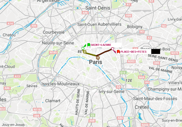 Feuille de route en métro (Saint-Lazare -> Place des Fêtes)
