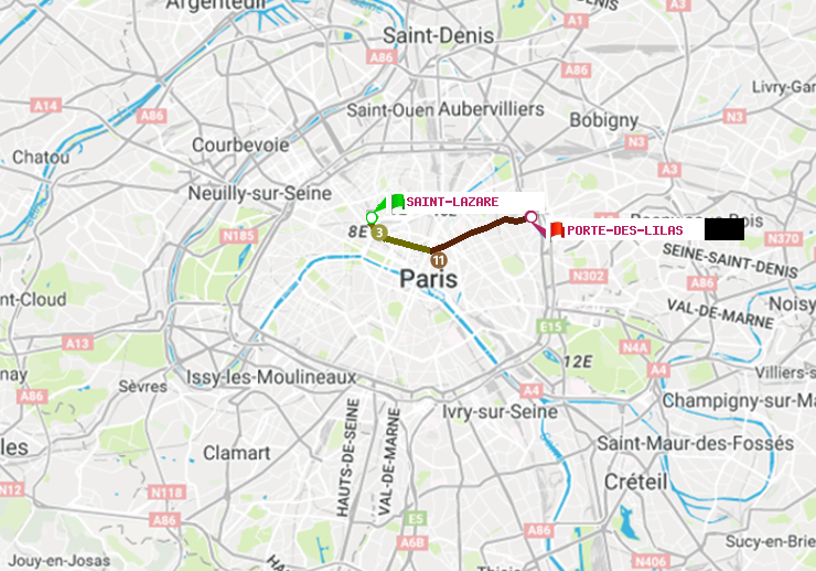 A : Saint-Lazare | B : Porte des Lilas