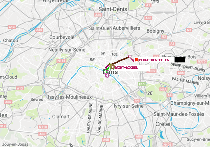 Itinéraire en métro parisien de Saint-Michel vers Place des Fêtes