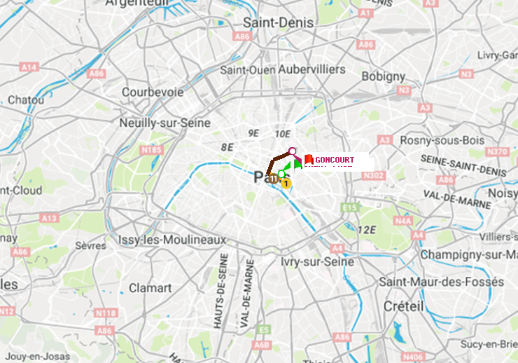 . Quant à l'arrêt Goncourt (Hôpital Saint-Louis), il est situé à l'adresse : 152 avenue Parmentier 75110 Paris 11ème