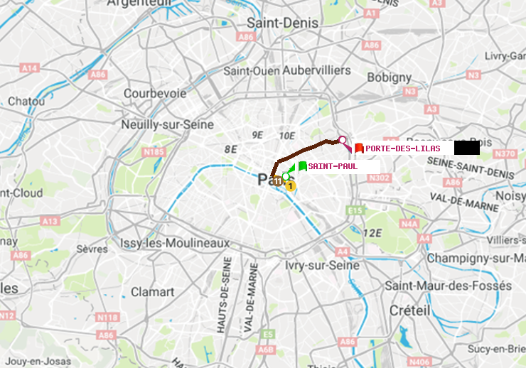 A : Saint-Paul (Le Marais) | B : Porte des Lilas