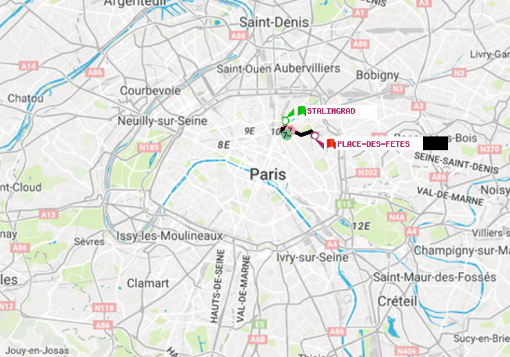 Feuille de route en métro (Stalingrad -> Place des Fêtes)